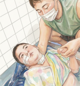 重度の肢体不自由な方に、入浴・排せつ・食事の介助・外出時の移動支援・入院時の支援などを総合的に行う