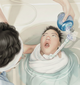 ※イラストは倫理上の都合により着衣のまま入浴していますが、実際は脱衣での入浴となります。